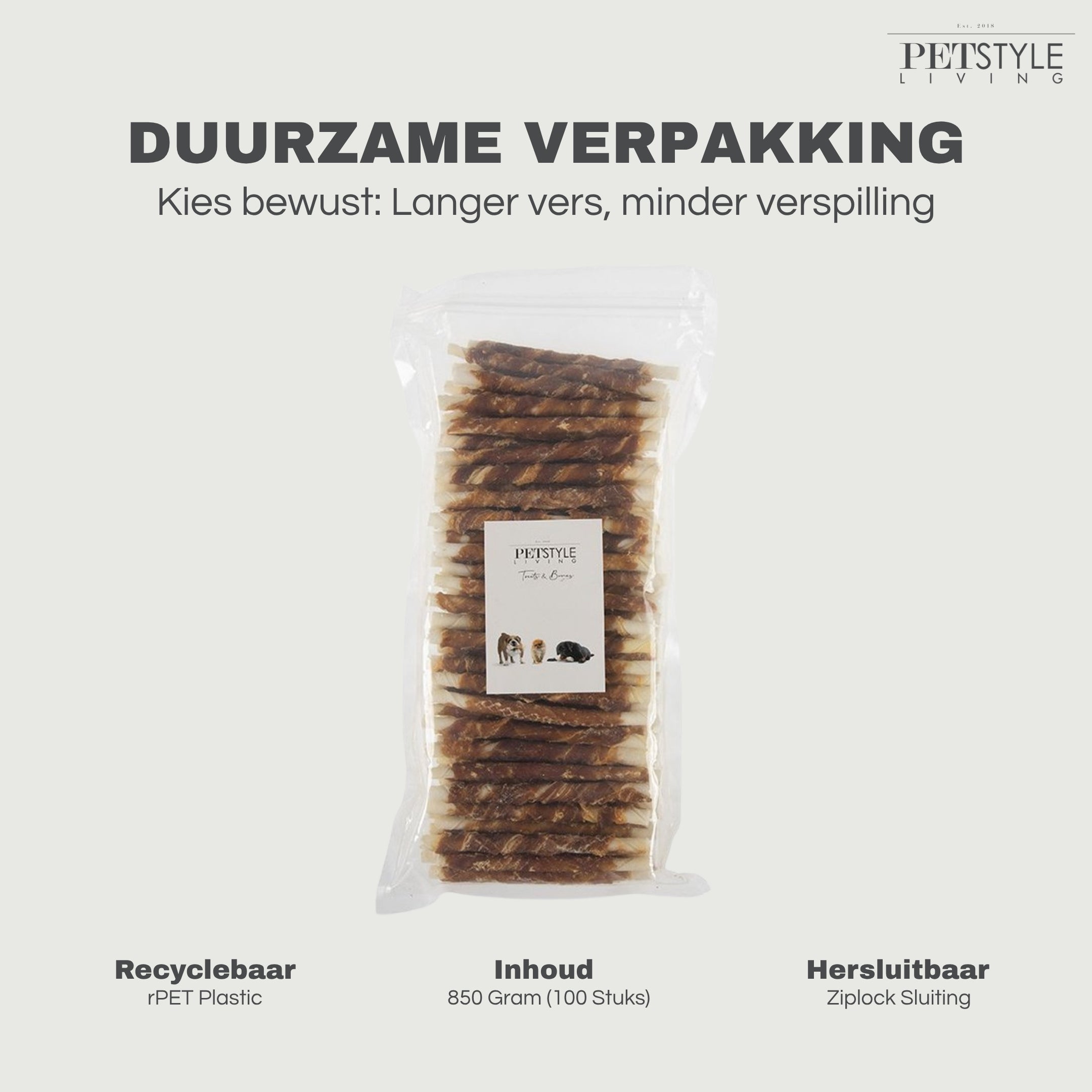 Petstyle Living - Bâtonnets torsadés avec canard 12,5 cm - 100 pièces